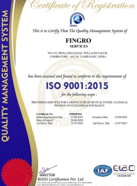 At Fingro Services, we are committed to delivering trusted and reliable financial solutions. Our dedication to quality has been officially recognized with the prestigious ISO 9001:2015 Certification. This certification demonstrates that our Quality Management System meets international standards, ensuring transparency, consistency, and customer satisfaction in every service we provide. Scope of Certification